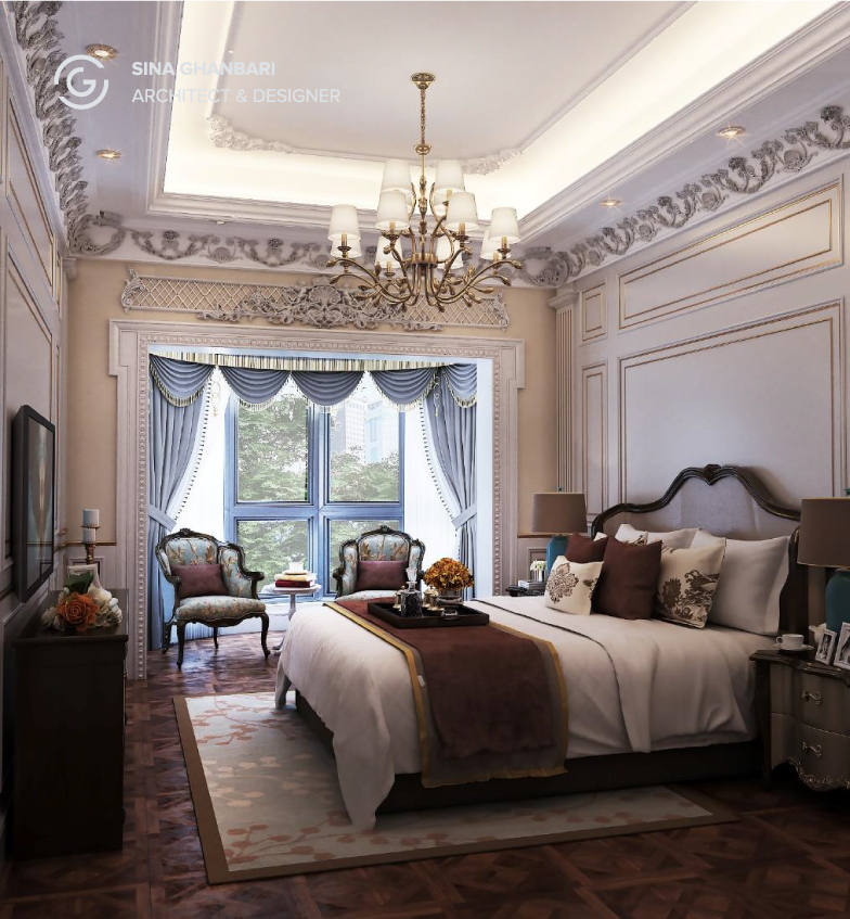 Master room design in neoclassical style