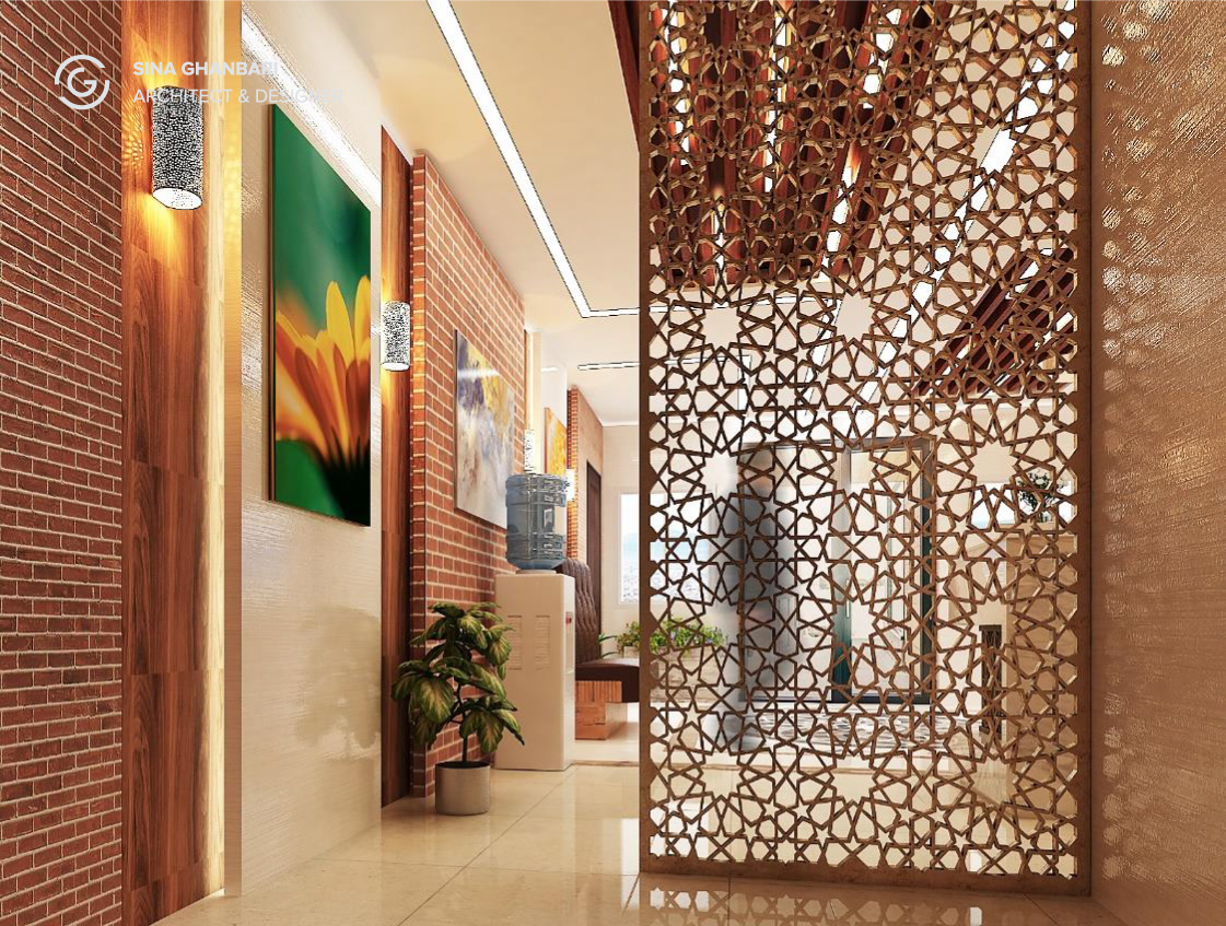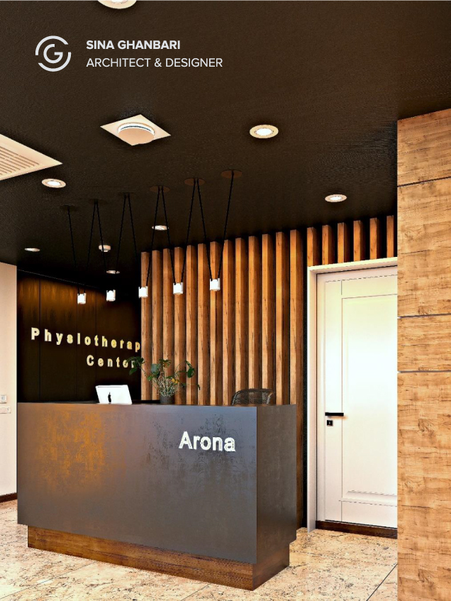 Lobby design for medical unit by combining brick and wood